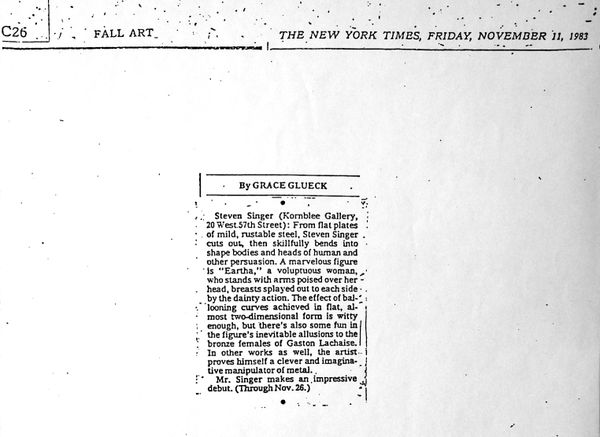New York Times January, '00, Barry Schwabsky, November, '83, Grace Glueck